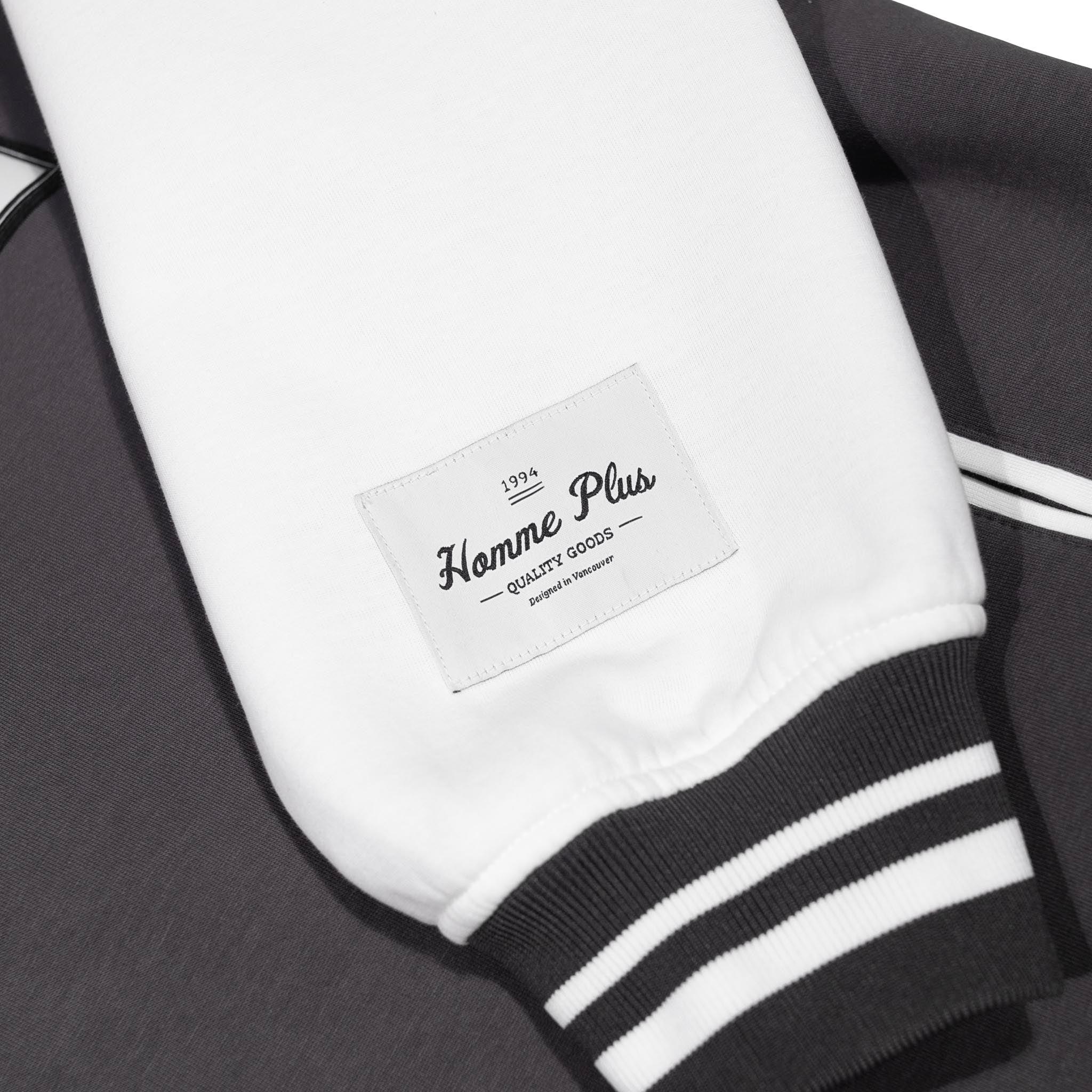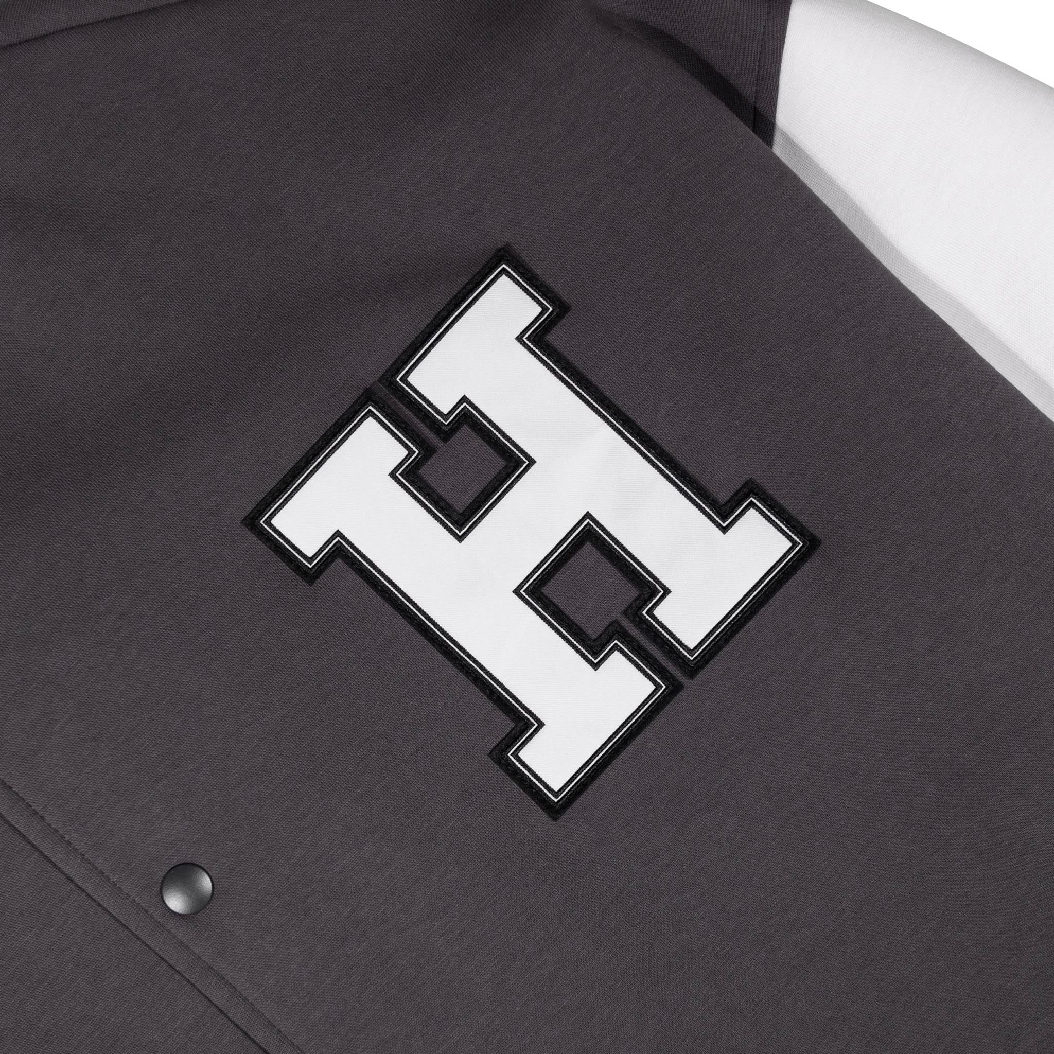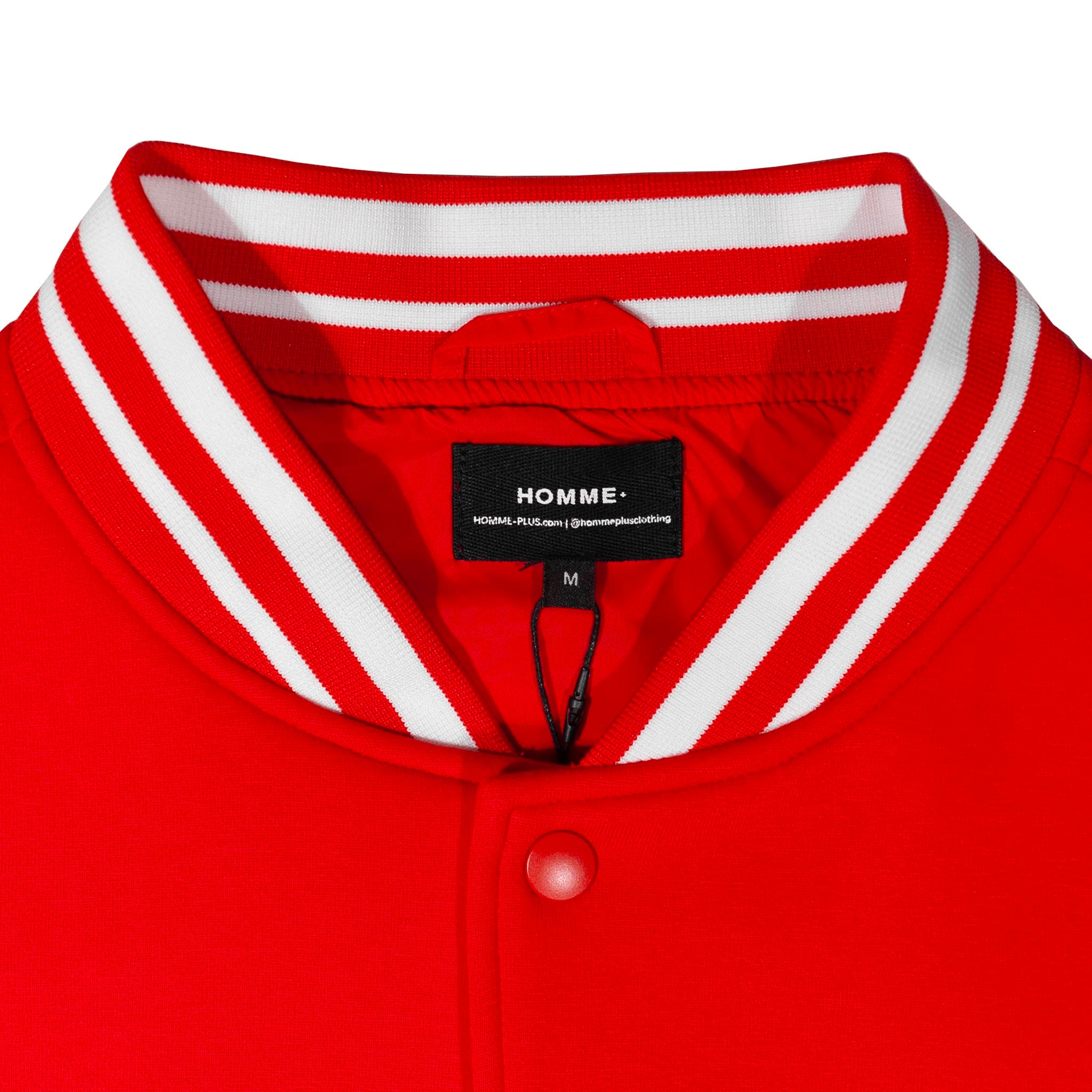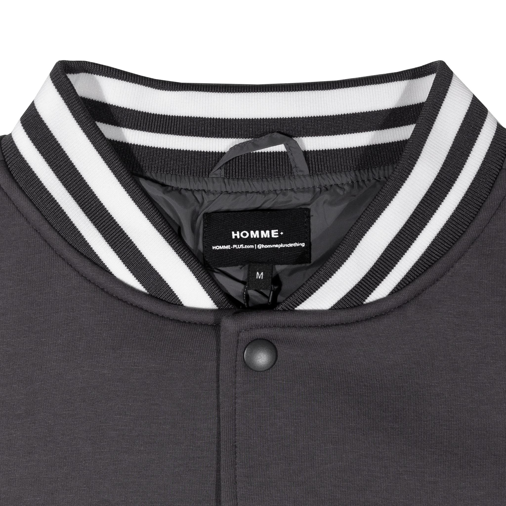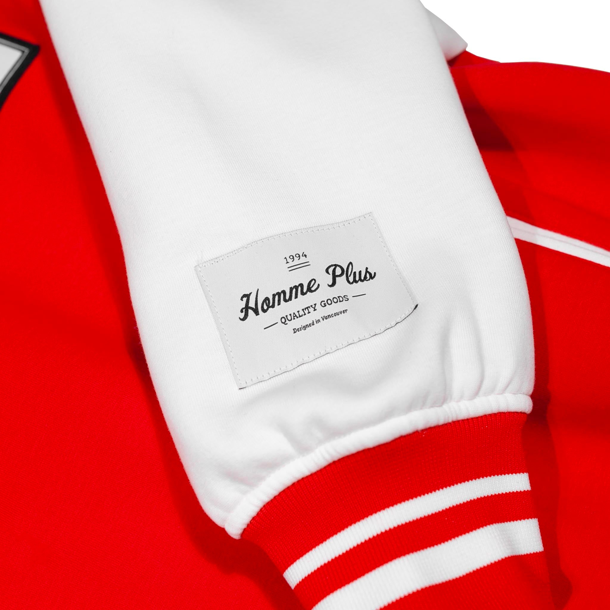 The HOMME+ Varsity Jacket delivers a classic collegiate aesthetic with its oversized fit and detailed embellishments. Featuring a woven label, fine embroidery, bold patches, and a statement back print, this jacket offers a contemporary take on a timeless style with functional interior elements.